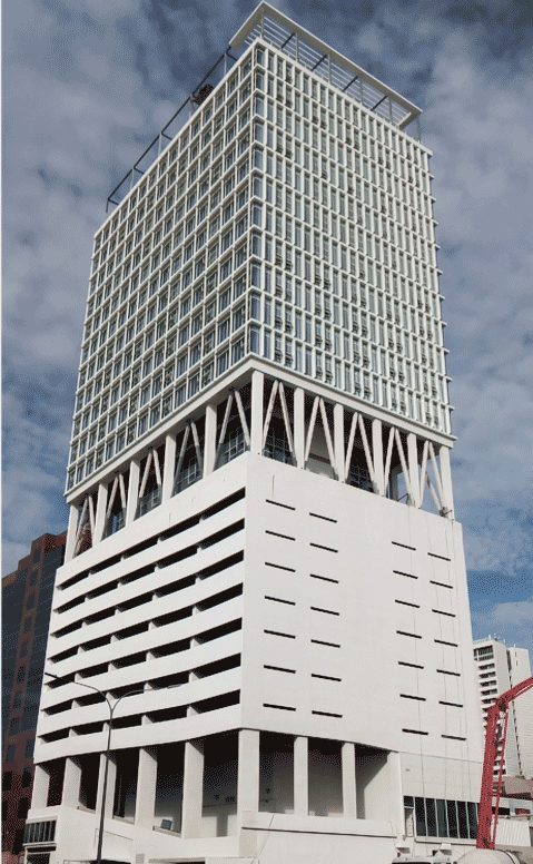 項目位于巴布亞新幾內亞首都莫爾茲比港TOWN區CBD核心地段,總占地面積1808平方米,規劃總建筑面積2.9萬平方米,是“南太平洋第一高樓”。博大施工范圍包括但不限于幕墻工程、遮陽板系統、幕墻本身的防雷接地裝置、幕墻龍骨、幕墻封邊封頂等。